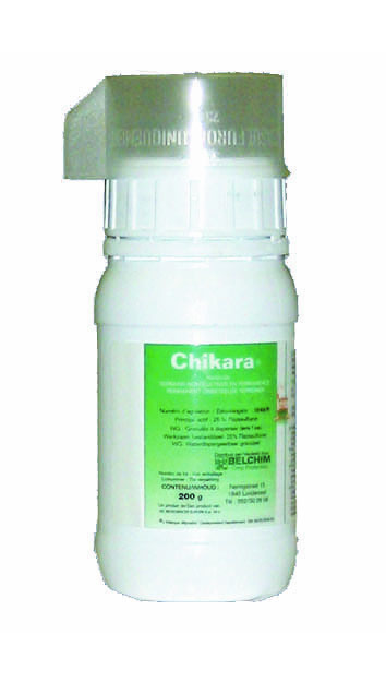 Bodemherbicide voor een totale onkruidbestrijding op verharde en niet-verharde permanent onbeteelde terreinen. Ook toepasbaar onder een aantal Abies en Picea naaldconiferen. Nawerking tot maximaal 6 - 7 maanden, afhankelijk van de dosis. Bij aanwezigheid van onkruiden Chikara mengen met een erkend product op basis van glyfosaat.Dosis:- voor een persistentie van 3 tot 5 maanden: 0,15 kg / ha- voor een persistentie van 6 tot 7 maanden: 0,20 kg / ha
